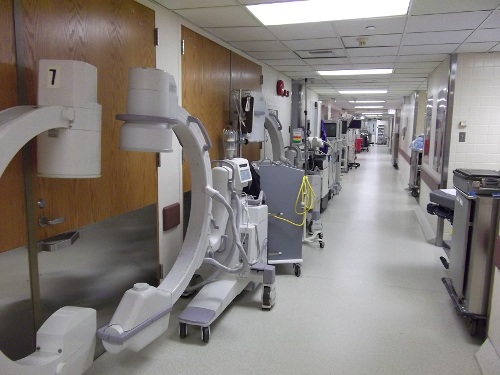 图4、拥挤但有序的手术室走廊:各种手术辅助设备就近放在走廊,可随时取用